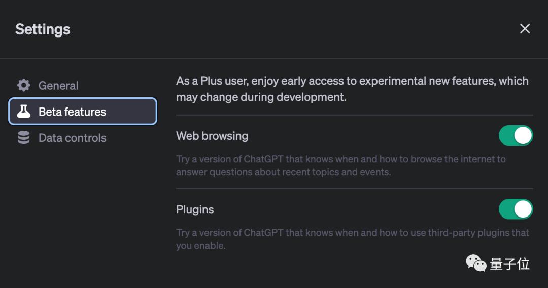 要使用联网和插件功能,首先要付费订阅ChatGPT Plus,然后在设置中打开这两个选项。