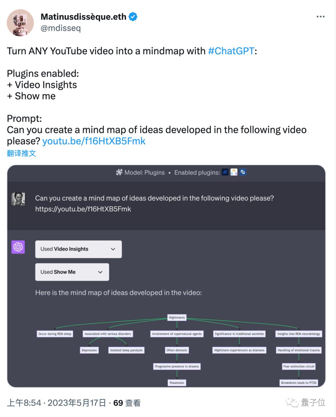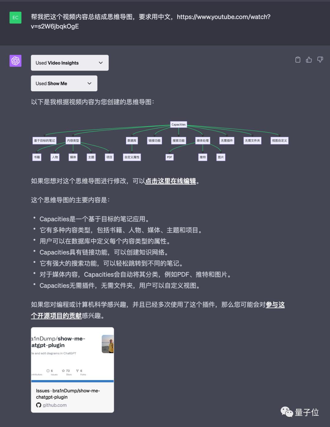 已知一个插件Video Insights可以总结视频的内容,另一个插件Show Me可以生成思维导图,把他们结合在一起会发生什么?