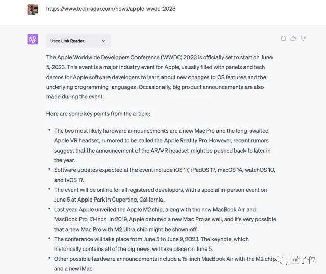 丢给它一个链接,比如新闻网的,它就能帮你读,然后概括主旨、总结要点。