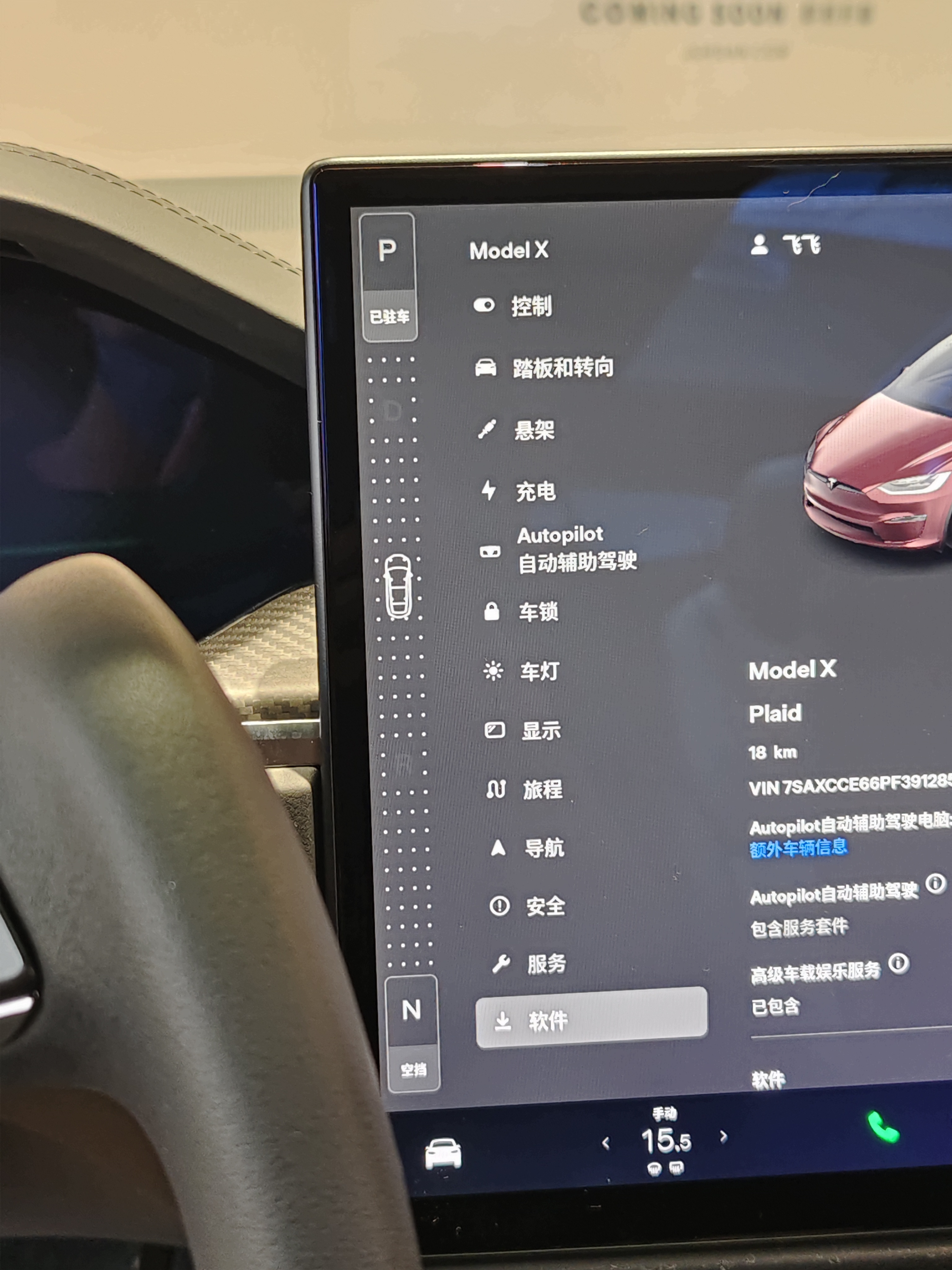 接下来我要体验的Model X,同样获得了最新版的OTA,但由于新车采用的是纯视觉工作原理,配套固件尚未通过相关部门审核,AutoPilot、FSD暂时没法体验了。