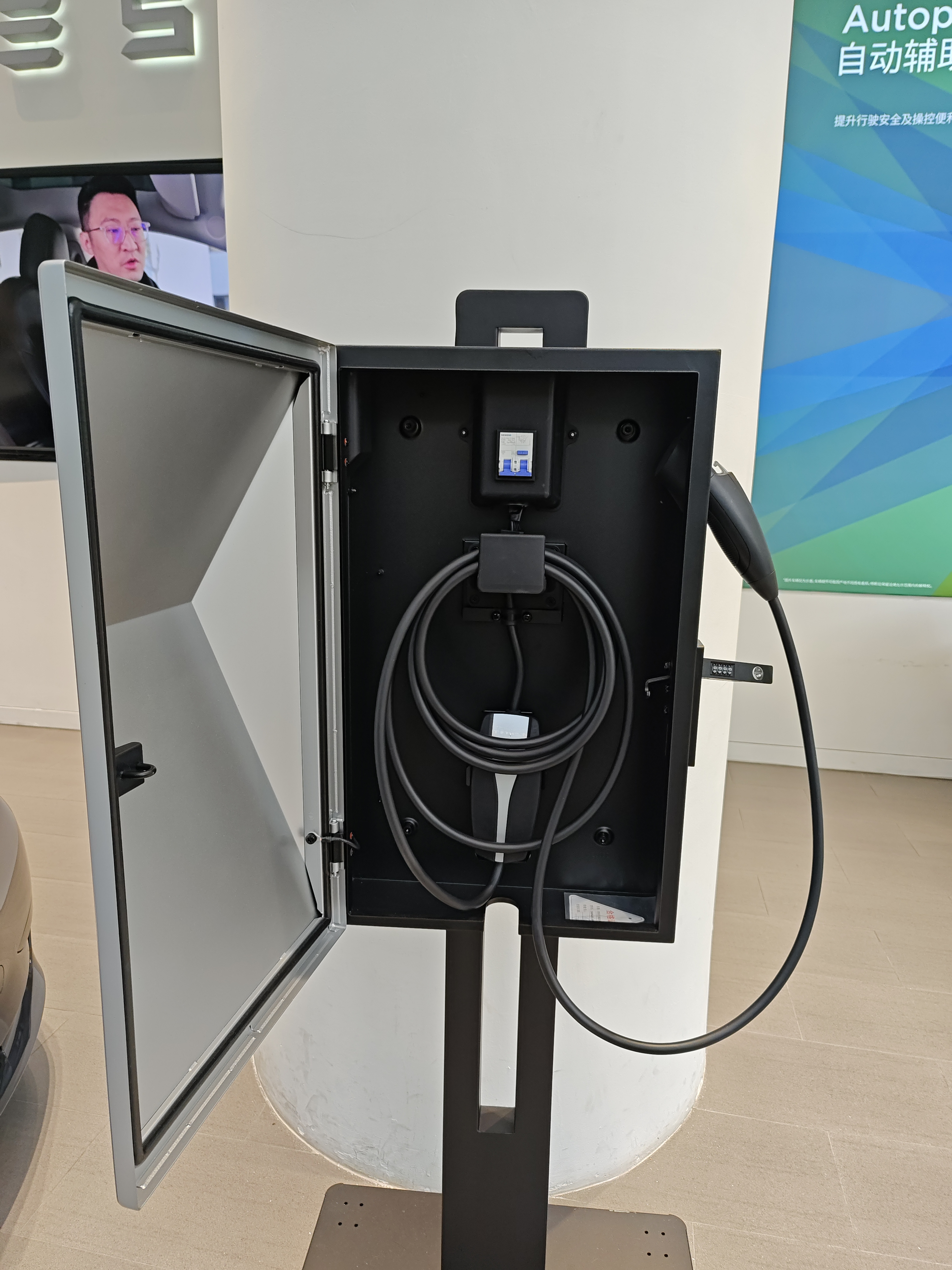 这期间,负责人还给我介绍了特斯拉最新的Cyber风充电桩,周边产品配套成熟,却不见Cybertruck量产,实在让人有点费解。
