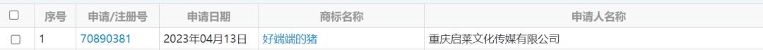 在短视频平台上,好端端的猪目前显示并没有签约任何MCN机构,但是经过在中国商标网查询,“好端端的猪”的商标目前已经被一家成立于今年2月份的公司申请。“好端端的猪”合作拍摄团队@术航也位于这家公司的股东之列。