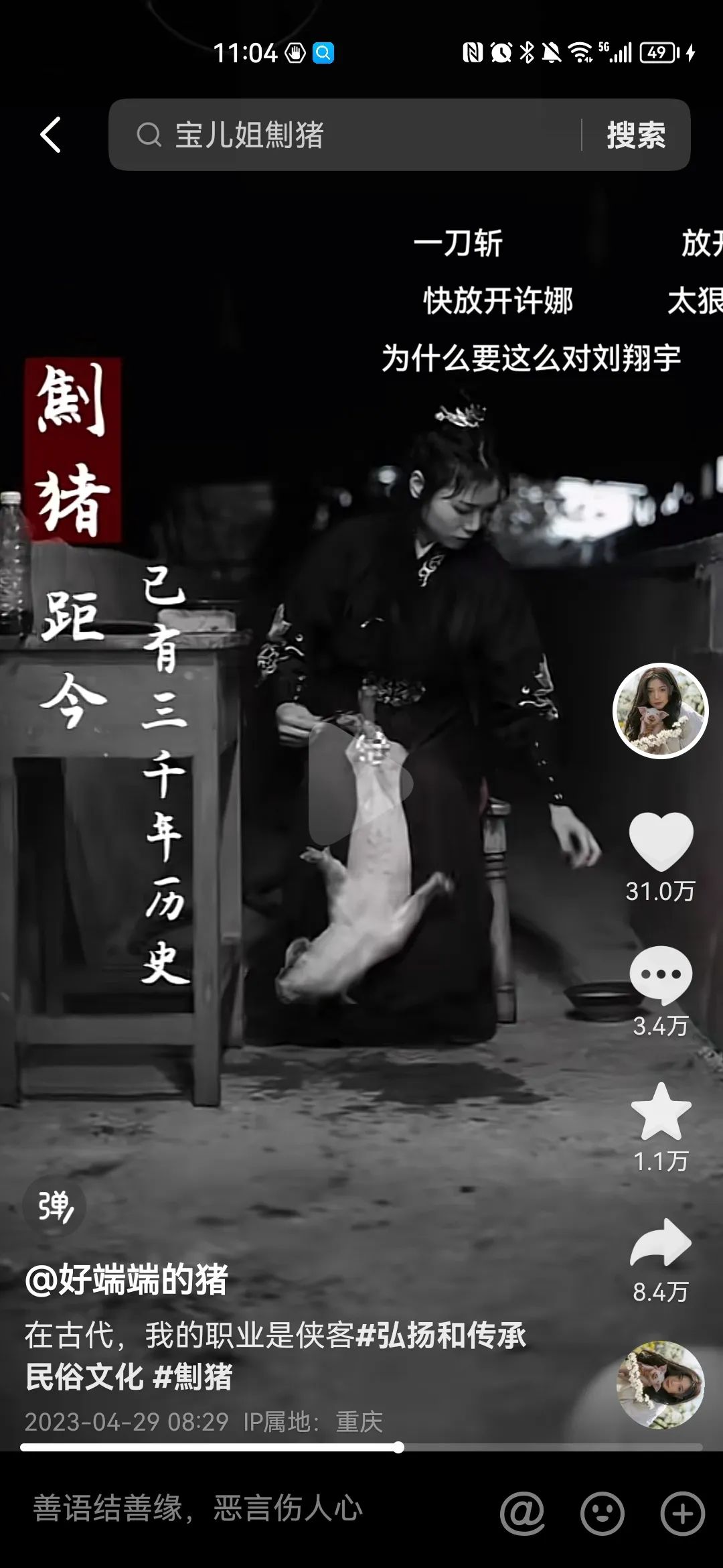 在看“好端端的猪”的作品时,不知道会不会有很多人不自觉地想到去年凭借着8分钟一只羊火爆网络的“荒漠屠夫”@灰太狼的羊。同样是三农赛道出圈,顶着“屠夫”称号的年轻美女,她们的相继走红,让大众看到了在短视频这个风起云涌的舞台,想要出名,还是得掌握一些“流量秘籍”,不然就只能默默无闻或是一夜之间消失。那么好端端的猪的秘籍都有哪些呢?