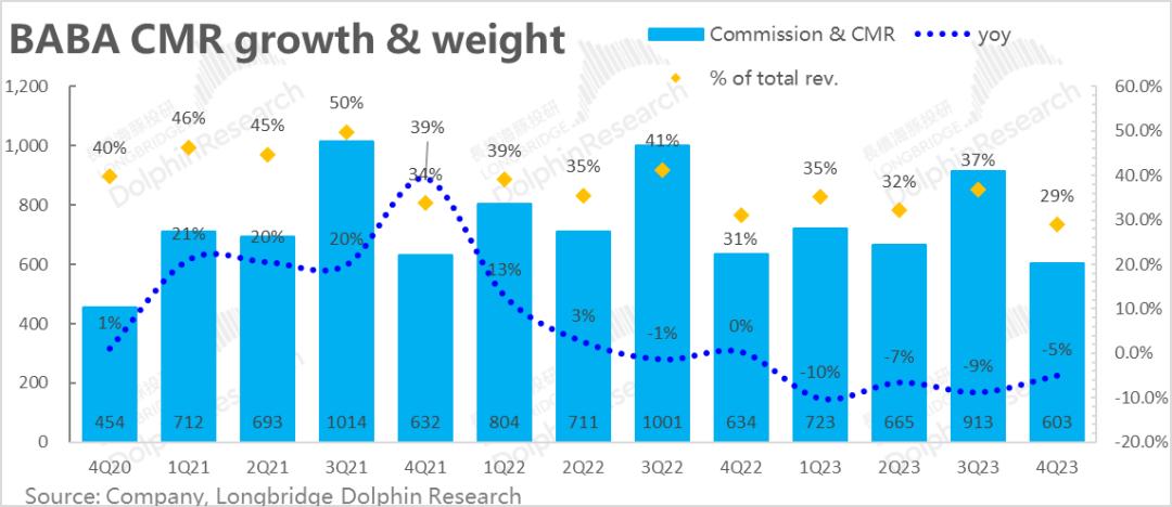 a. 一季度淘宝天猫收入(CMR,含佣金与广告)同比收缩5%,仍然比市场预期差一些。