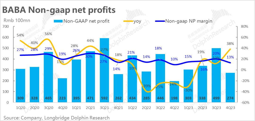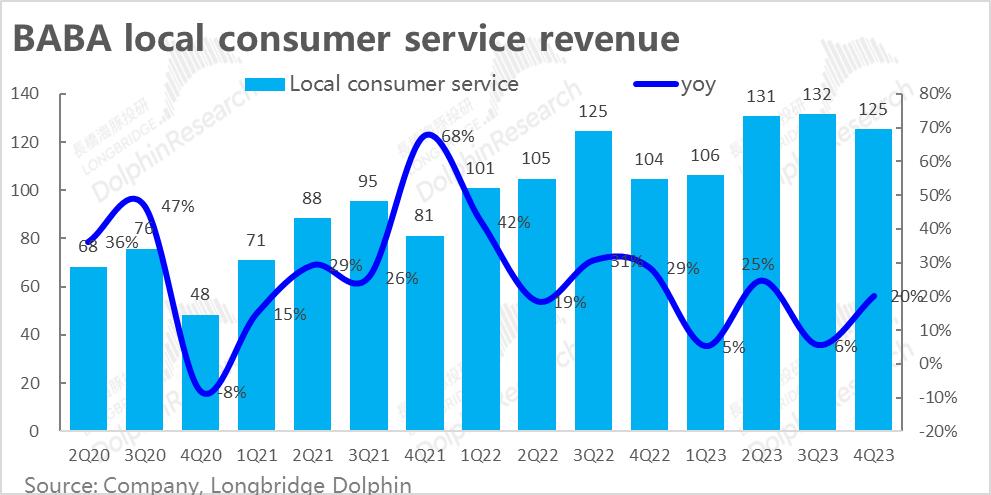 2)本地生活这个季度收入同比20%,也还不错,同时亏损也比去年同期少了十多亿,表现也不错;另外菜鸟这个季度也还行,有成长有减亏,不过不算新信息,前两个季度就是这个水准。