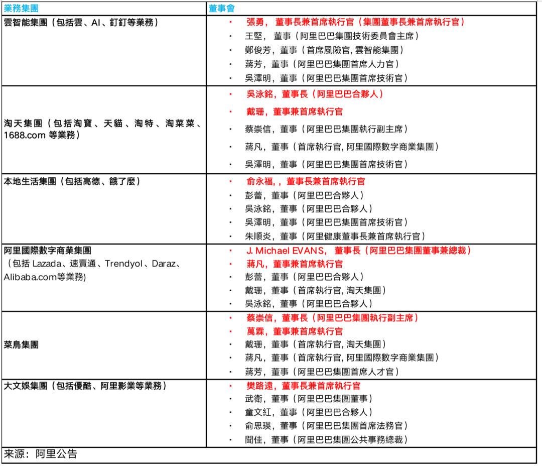 1. 明确出了淘宝天猫100%集团全资,其他业务集团都会寻求外部融资;