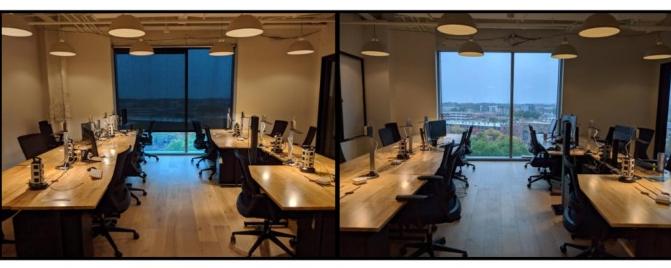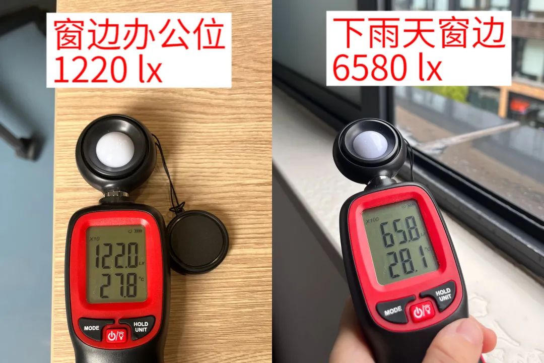 室外白天,照度通常在 2000 到 100,000 lx 之间,就算阴天下雨,窗边的工位也能达到 1000 lx 以上。