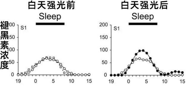 更多的 5-HT,会抑制白天的褪黑素,并让晚上的褪黑素浓度变得更高。