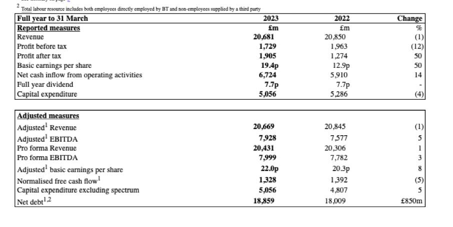 5月18日,英国电信还发布了2023财年业绩,截至2023年3月31日,公司实现收入206.69亿英镑,同比下降1%,超过预期的205.18亿英镑;调整后税后利润19.05亿英镑,同比增长50%;调整后基本每股收益0.22英镑,同比增长8%,预期为0.2英镑。23财年FTTP的订单同比增长70%;本季度净增39.5万,使用率增长至30.4%。公司成本转型步入正轨,自2020年4月以来,年化总成本节约21亿英镑,目标是30亿英镑。