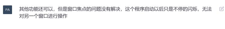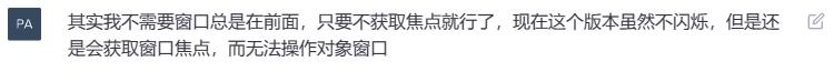 窗口会不停闪烁,点击后也会立刻获取焦点,没办法操作目标窗口。 于是我们进行反馈。