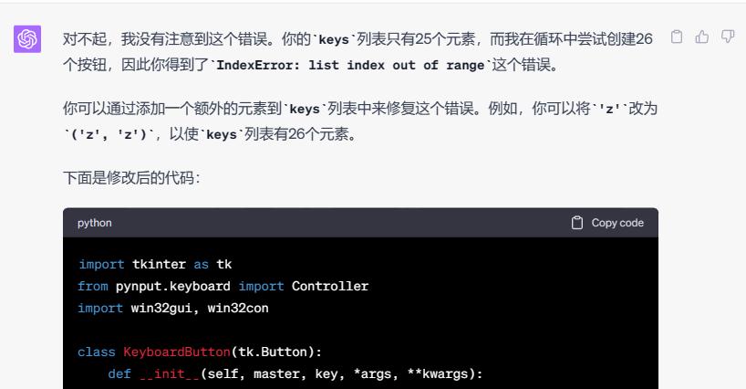 好吧,总之就是指定的列表元素不够按键数量呗,我们可以自己调整。 为了让布局再舒服一点,ChatGPT 又为我们做了一些改进: