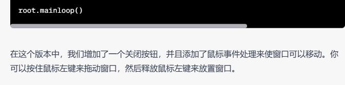 看起来更像一个正常的窗口了,不光有标题栏,还能随意拖动和调整大小(从这些额外因素看,甚至连最终成品都比它要差一些)。