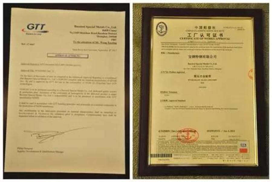 宝钢生产的殷瓦钢通过GTT认证,成为全球唯二的供应商,同时得到了中国船级社的认证