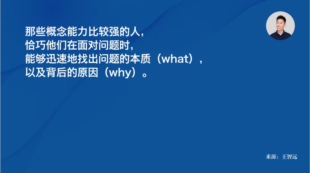 那些概念能力比较强的人,恰巧他们在面对问题时,能够迅速地找出问题的本质(what),以及背后的原因(why)。