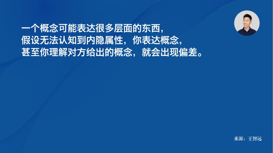 因此,一个概念可能表达很多层面的东西,假设无法认知到内隐属性,你表达概念,甚至你理解对方给出的概念,就会出现偏差。