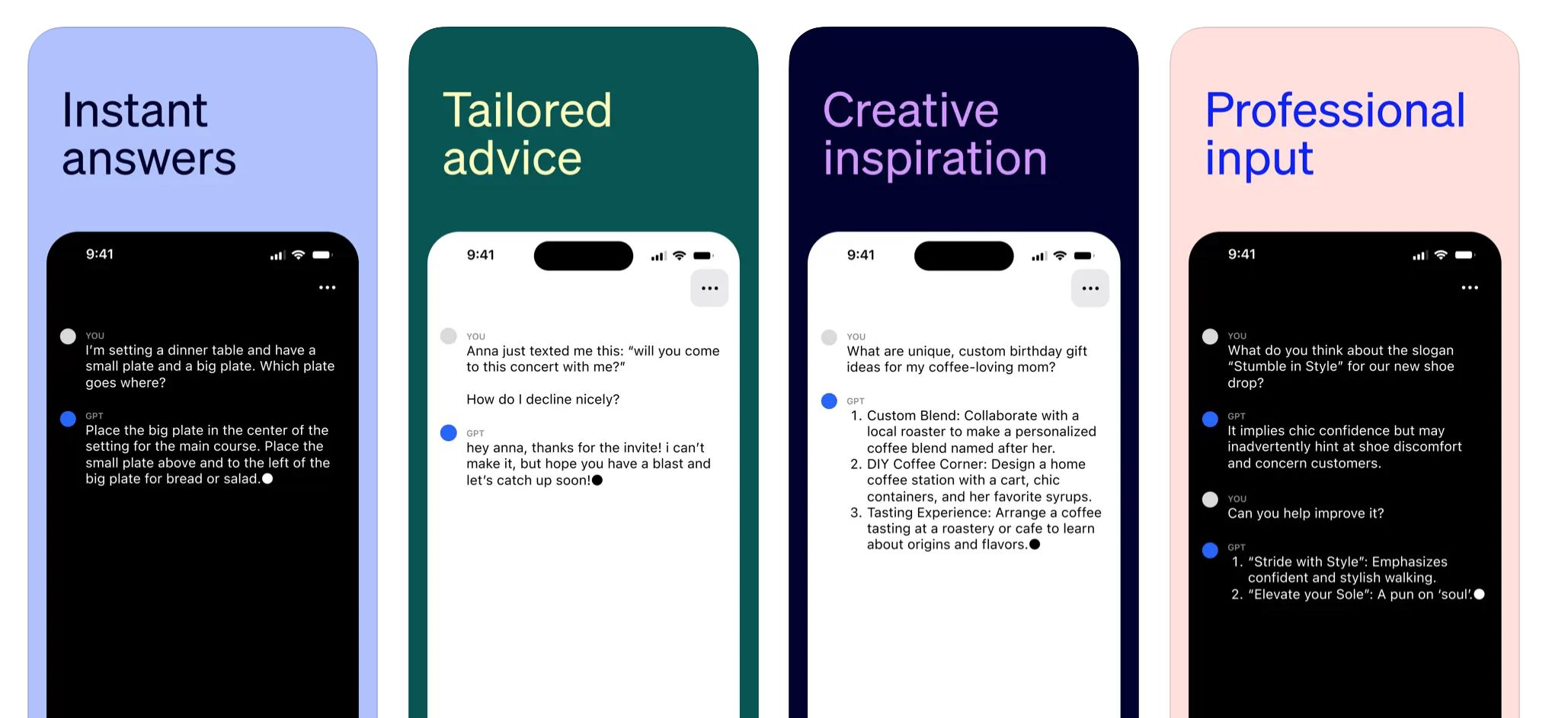 对于本次iOS应用程序发布,OpenAI在官网上写道:“我们朝着使命又迈进了一步,将最先进的研究转化为有用的工具,赋予人们权力,并让AI服务更容易被获得。”