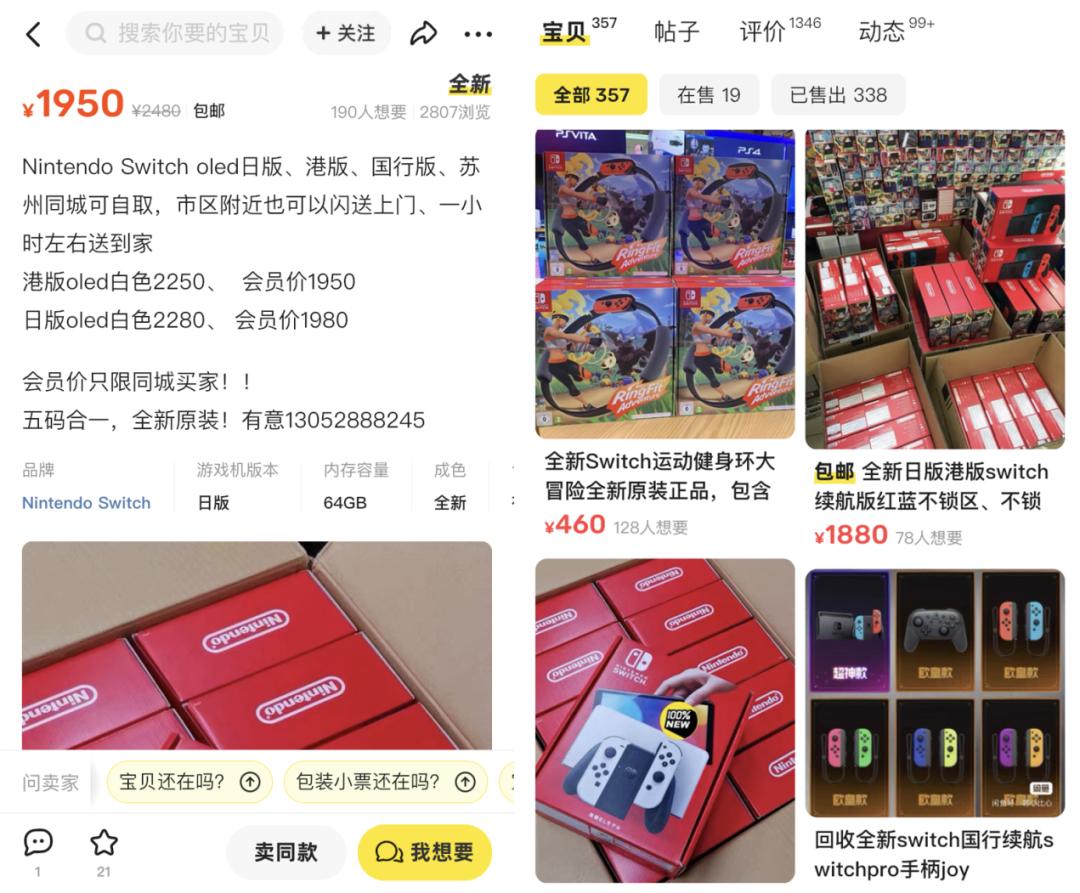 小林拿着闲置Switch lite,拍好照刚挂在闲鱼上,立马就有好多人来询问。而打开那些咨询者的闲鱼首页,全都是Switch的二道贩子。