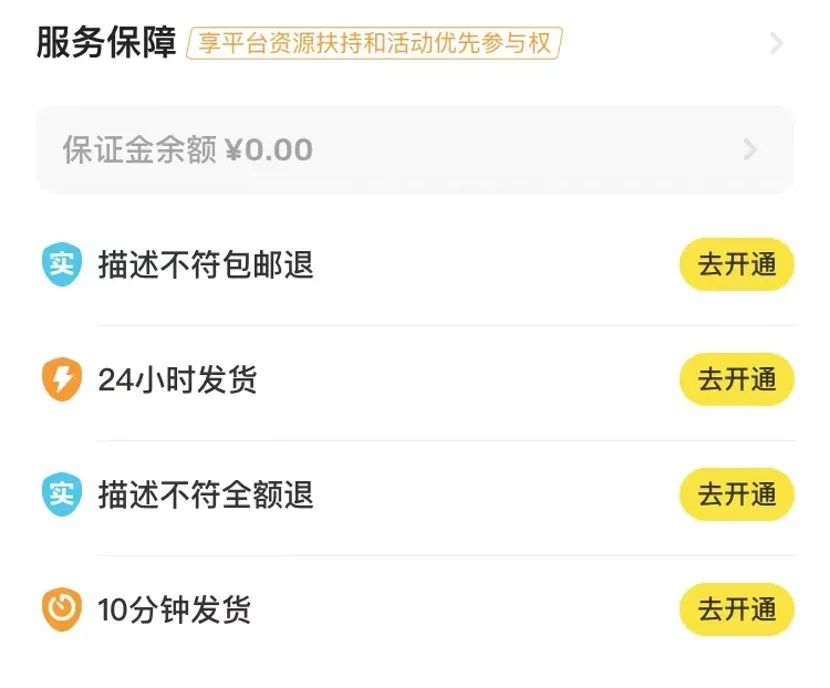 对于这几项规定,闲鱼要求特定类型商品强制开通,其余商品类型卖家可根据情况自愿开通。对于资源缴纳保证金开通服务的卖家,闲鱼则保证将提供额外曝光量。