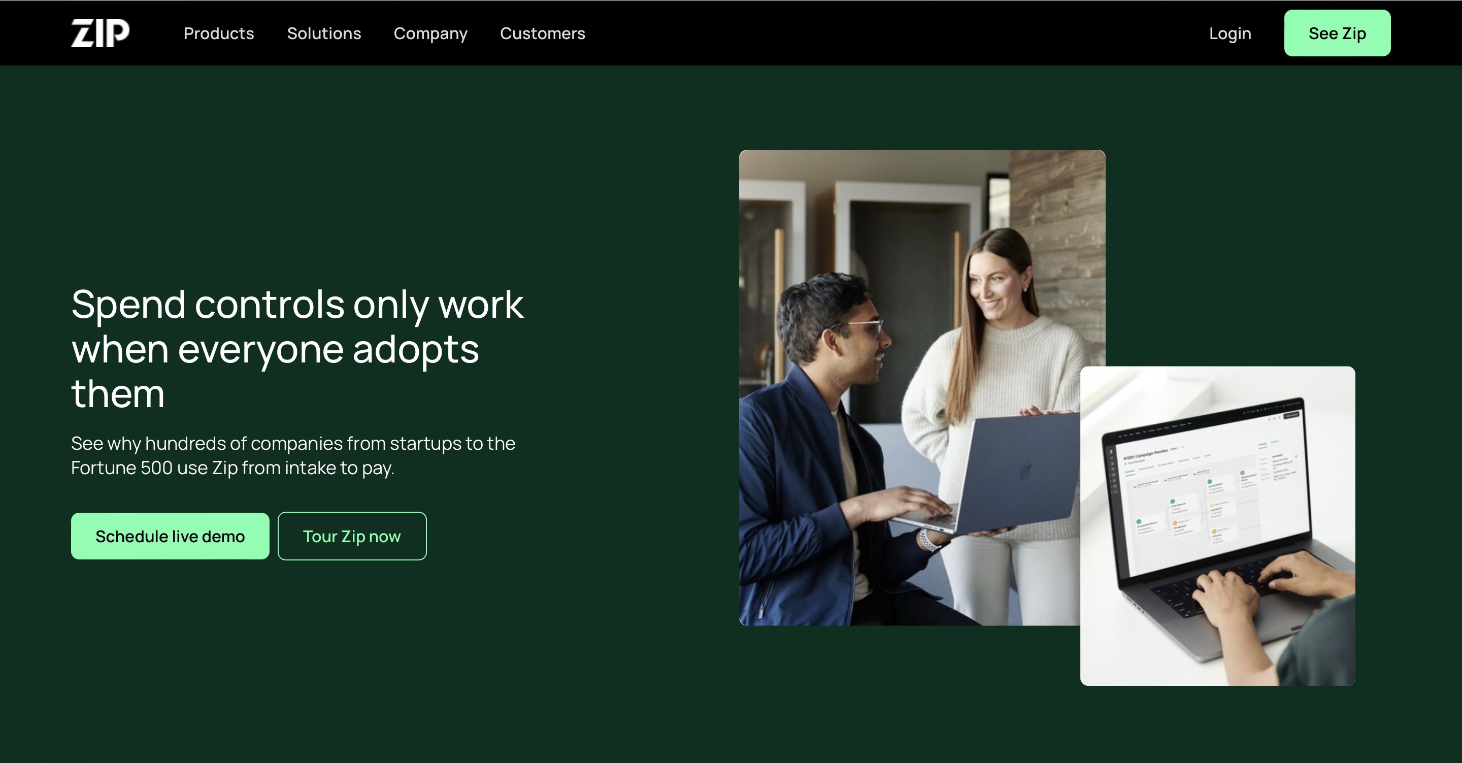 「Zip」平台连接了企业组织中的各个相关部门,推出了“从受理到采购”的全流程解决方案,员工在发起采购后,这项申请将经过财务、法律、IT、安全等部门的审批,然后录入企业资源管理软件。该公司最近还推出了付款功能,能协助员工完成采购订单签发、发票处理和付款。
