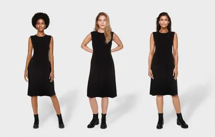 在你眼前的这个模特,穿着白色 T 恤和中长牛仔连衣裙,露出一个标准的职业微笑。如果图片出现在某宝,大概率淹没在五光十色里,被我们的手指机械地划过。