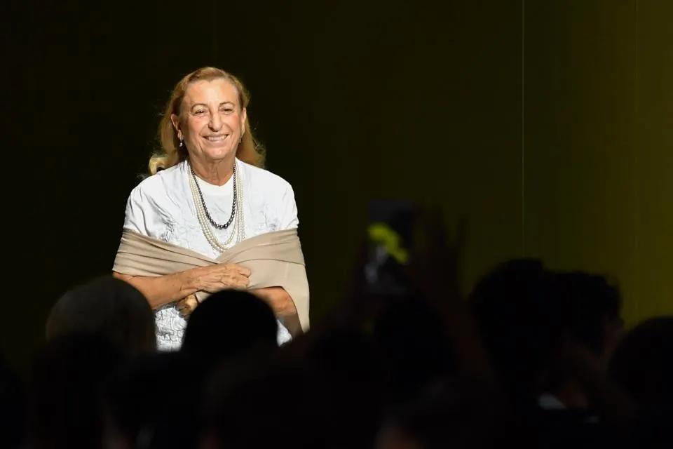 图片拍摄于意大利米兰,2018年9月20日。意大利时装设计师兼女商人缪西娅·普拉达(Miuccia Prada)在米兰举行的2019春夏女装秀上展示了普拉达时装系列,并赢得了掌声。 图片来源:Andreas SOLARO/法新社
