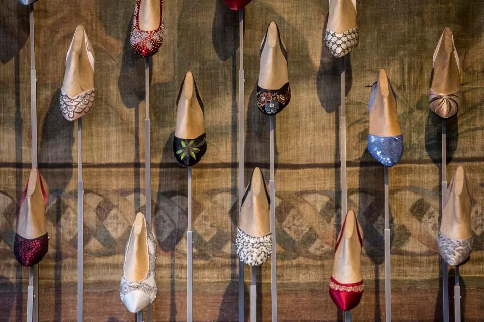 图片拍摄于意大利佛罗伦萨的斯皮尼·费罗尼宫(Palazzo Spini Feroni),2016年7月18日。位于该宫殿的奢侈品牌菲拉格慕总部的博物馆里陈列着鞋子。这座宫殿是吉奥瓦娜(Giovanna)的父亲,著名的意大利鞋匠萨尔瓦托·菲拉格慕(Salvatore Ferragamo)在20世纪30年代购买的。这座中世纪的宫殿最初建于1289年,由富商银行家Geri Spini为教皇博尼法斯八世购买。几个世纪以来,它多次易主,历经斯皮尼(Spini)家族、瓜斯科尼(Guasconi)家族、巴格纳诺(Bagnano)家族和费罗尼(Feroni)家族之手。自1995年以来,这座宫殿成了菲拉格慕博物馆的所在地。 图片来源:Alessandra Benedetti/Corbis via Getty Images