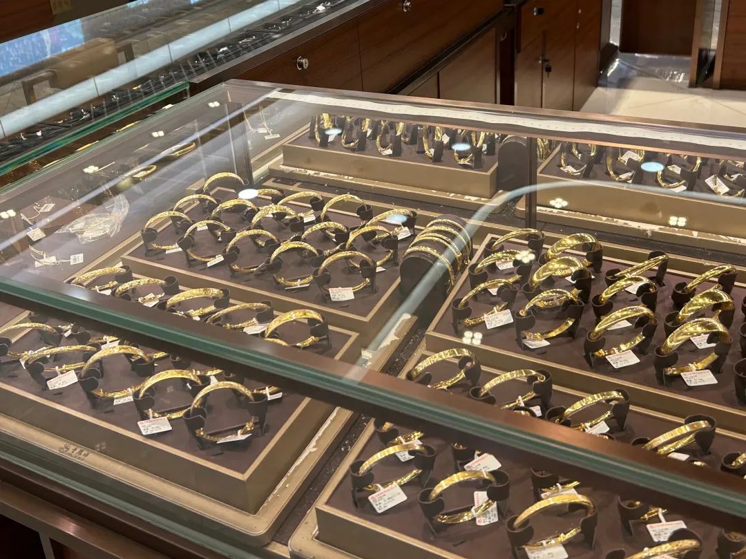 △曹经理说,近期店里的手镯卖得很好 图源:时代周报记者王晨婷/摄