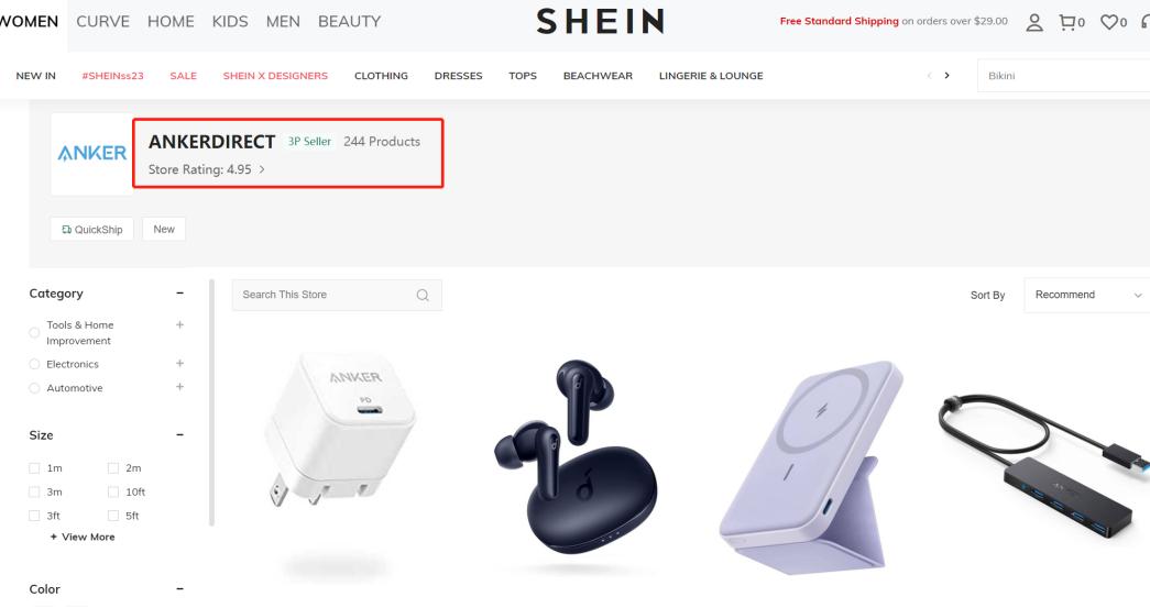 因此,在SHEIN推出第三方平台(Marketplace)之后,安克迅速成为第一批第三方卖家。