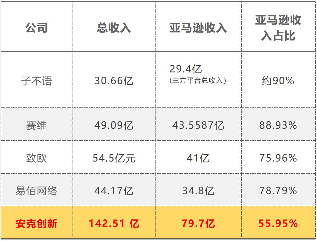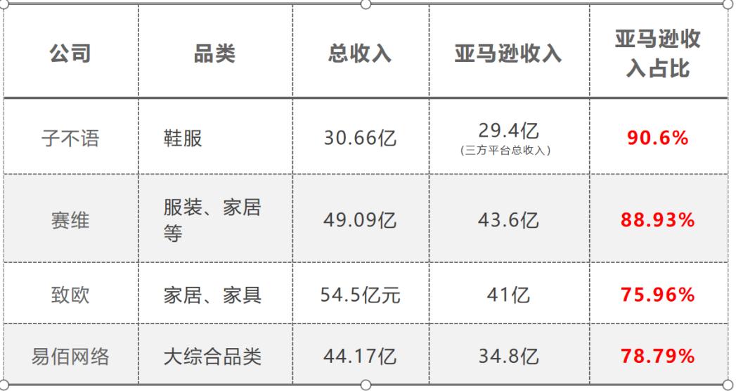 它们每年在亚马逊这个单一渠道的收入达到了29-43亿,占总收入比达75%-90%左右。