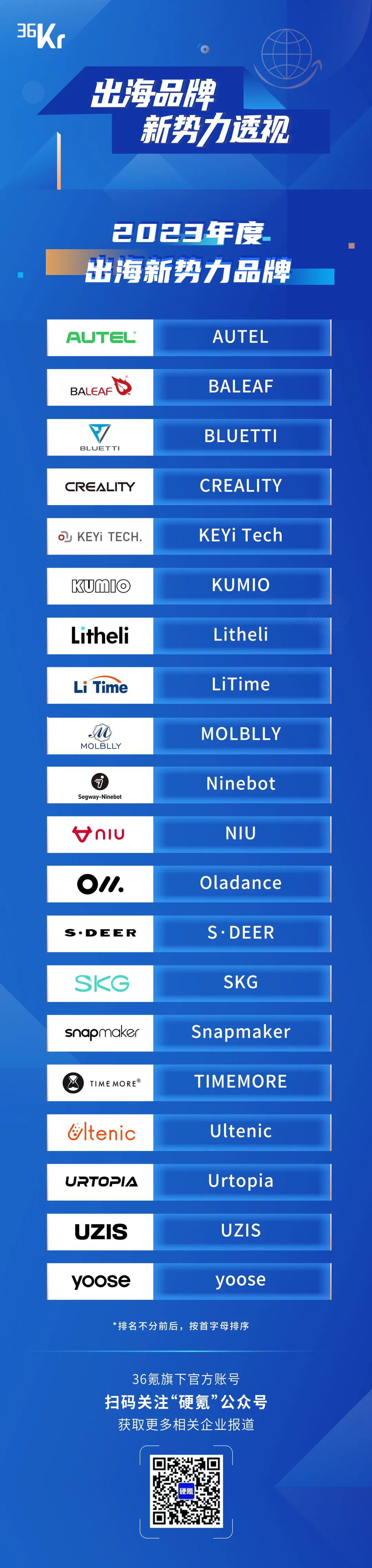 同时,在5月15日的“硬核跨境向新而行“活动分享会当天,36氪从出海的各个维度为考量,也授予了20家出海企业“2023出海新势力品牌”称谓。
