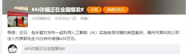 今天一个新闻上热搜了,内容是 “ AI 诈骗 ” 。