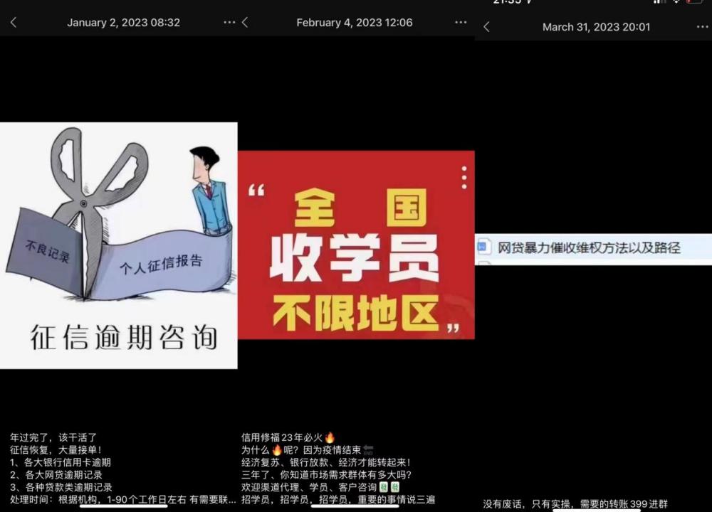 反催收人员朋友圈截图
