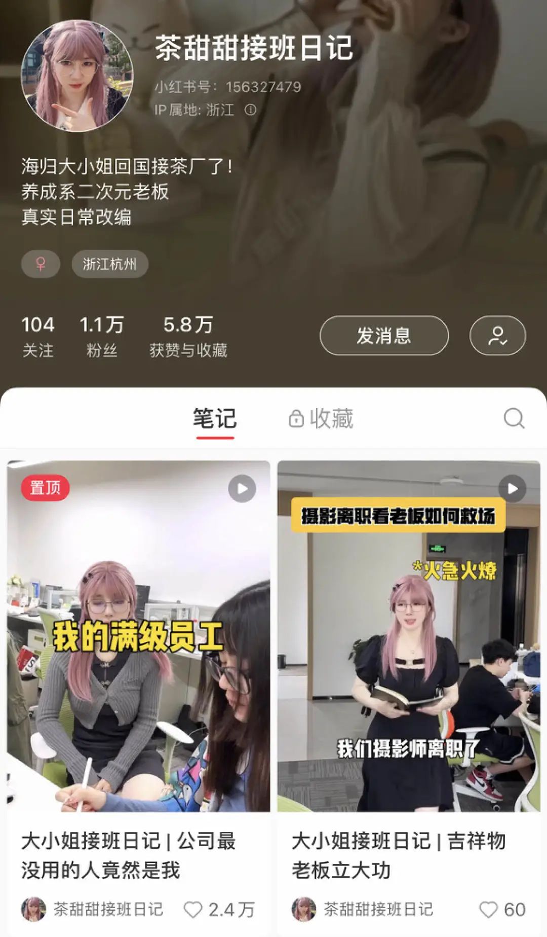 但也有人选择并热衷。“茶甜甜接班日记”就大大方方把“吉祥物老板”写在标题里,拍起职场小短剧,把人设流量词写在简介里——海归大小姐、养成系、二次元。