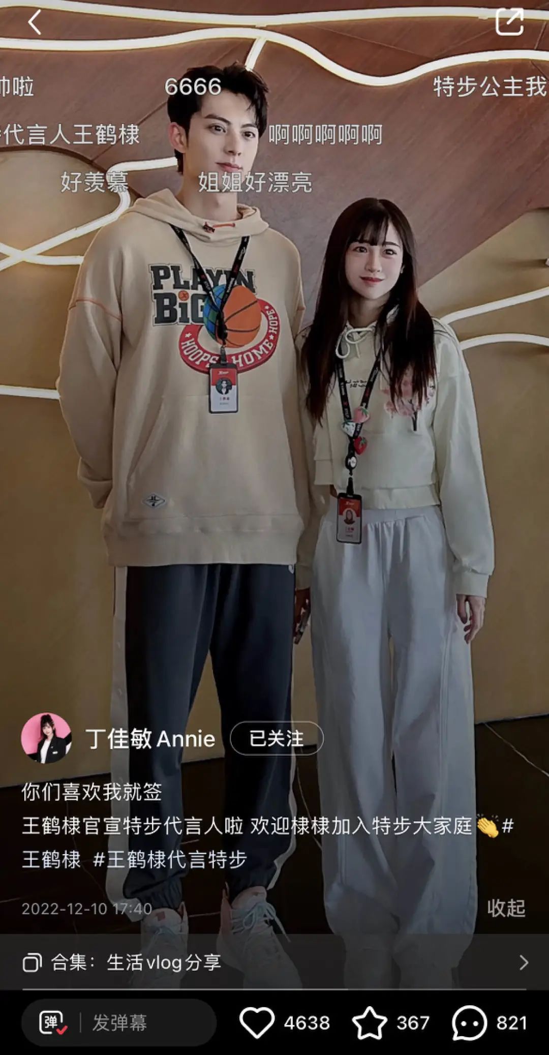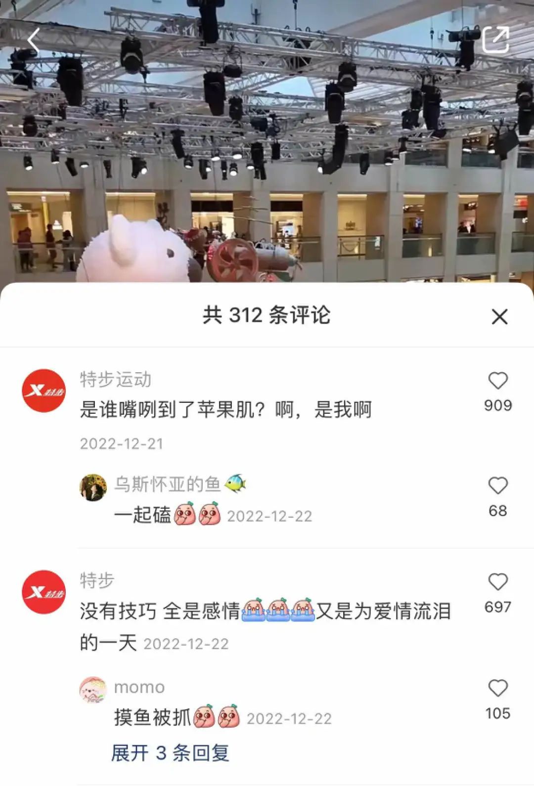 就算视频是一期“含特量”极低的纯撒狗粮恋爱vlog分享,特步官号也会散步到评论区刷一波存在感。
