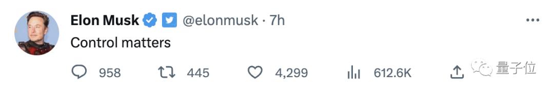 马斯克也来评论底下凑了热闹,“控制很重要”: