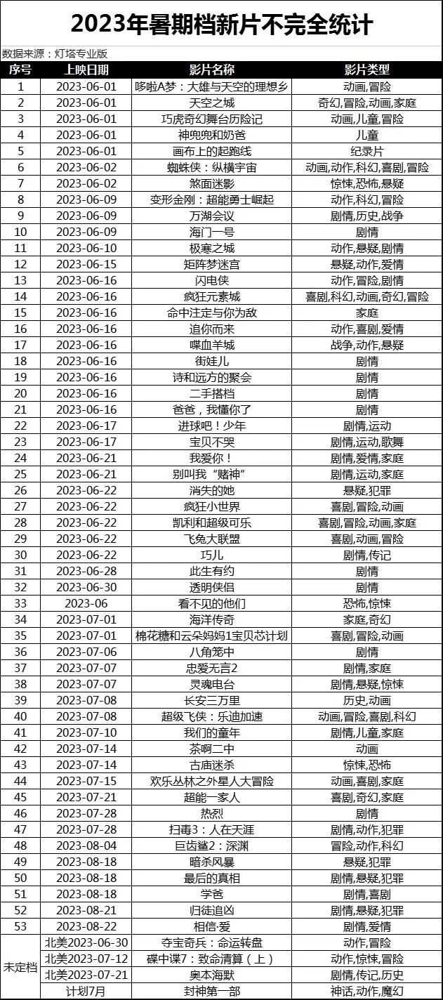 我们简单梳理了今年暑期档的53部已定档影片,目前来看,这批项目中具备一定体量的重点影片数量不足半数。