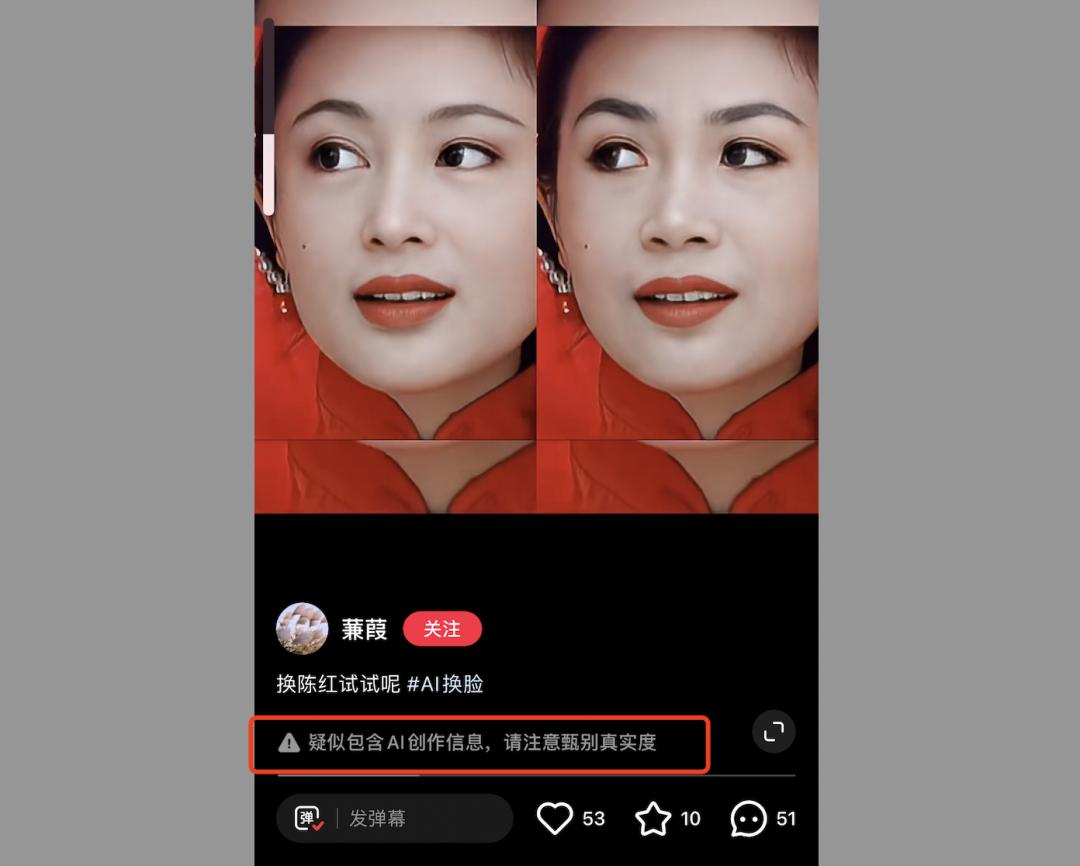 根据我国颁布的《互联网信息服务深度合成管理规定》,内容提供者需要按照对生成的图片、视频等内容进行标识等。实际上,我们已经看到小红书等国内社交平台标记了疑似AI生成内容,能起到一定预防作用。但AI生成内容的最后一个关口还在用户自己,媒体平台只能起一个过滤作用。