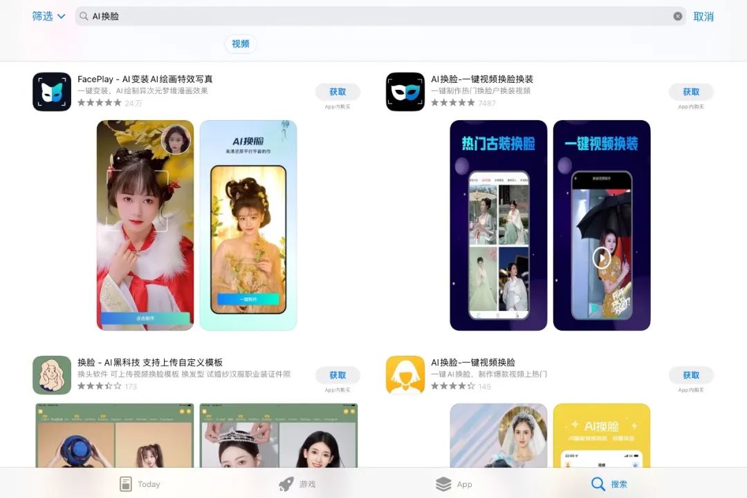 这样的“一键脱衣”技术早在2019年时就已在国外出现,但因广泛的舆论争议和声讨,项目迅速关闭下架。这股不良之风在今年的AI热中再次吹到国内,在网络上以“AI”、“换装”、“软件”等关键词组合搜索时仍能出现不少隐藏极深的相关软件,有心者甚至用此来制作、传播色情淫秽视频,AI视频变装服务已成为一门链条完整的黑色产业。