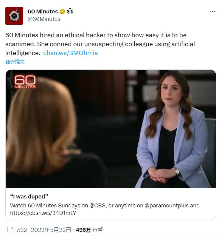 美国CBS电视台的电视新闻杂志节目60 Minutes在5月22日的最新一期节目中,现场展示了黑客是怎样克隆声音来骗过同事,并成功窃取护照信息的。