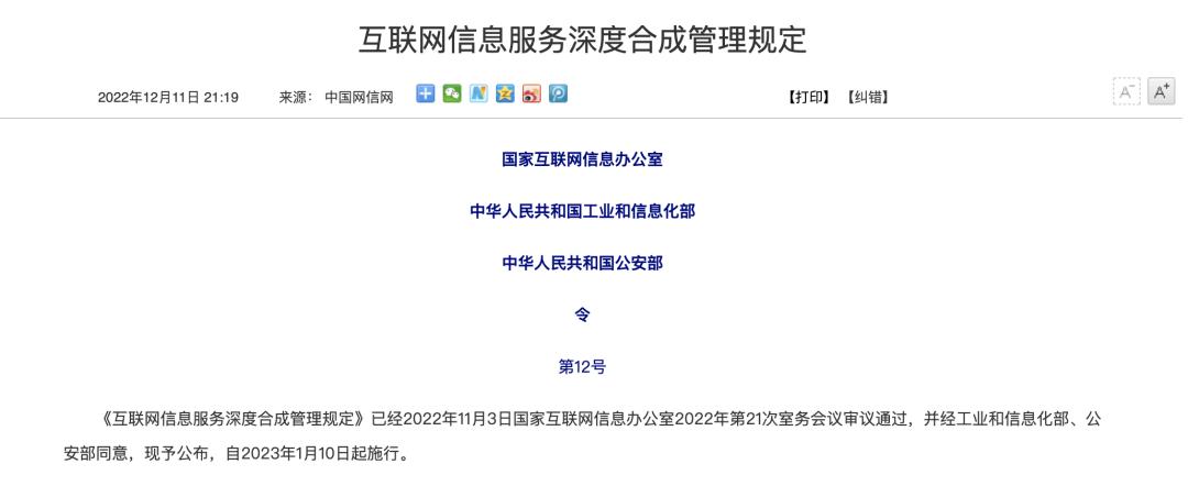 就在4月11日,国家互联网信息办公室又迅速起草了《生成式人工智能服务管理办法(征求意见稿)》,涉及的生成式人工智能包括基于算法、模型、规则生成文本、图片、声音、视频、代码等内容的技术,可以说对当下的AI伪造进行了全面的规定。