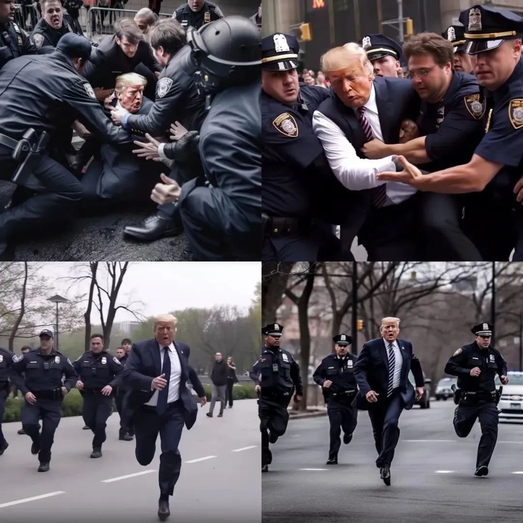 照片中的特朗普被警察包围,又按倒在地,看上去狼狈又慌乱。在听证会上,他掩面痛哭,还在潮湿阴暗的囚房中穿上了狱服。这些图片由公民记者网站Bellingcat的创始人艾略特·希金斯(Eliot Higgins)用Midjounrney制作而成。组图发出后,他的账号也随之被封查。