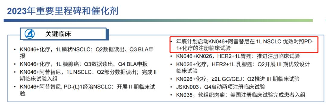 图:康宁杰瑞2023年重要里程碑和催化剂,来源:公司演示资料