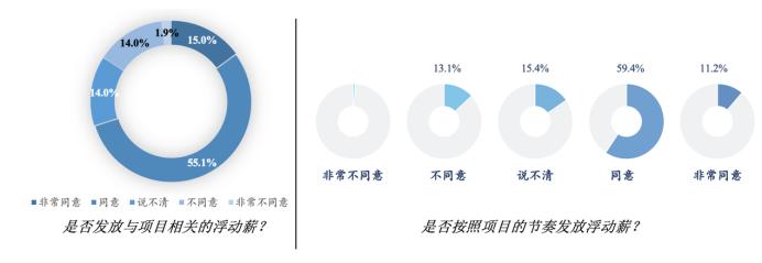 进一步看,在这部分预支项目奖金的企业中,有85%的企业预支付的额度相对浮动,基于预期收益变化;而剩余约10%的企业项目奖金预支额度较为固定;其余企业对预支额度与项目预期收益的感知不强。愿意贴现的企业,探索的方向是正确的,他们可能经历挣扎,但只要走出来,他们的激励机制就会为他们造就独特的竞争优势!