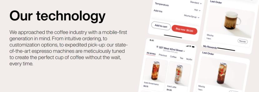 相比于传统的咖啡品牌,Blank Street Coffee 最大的优势在于“高效”。据纽约时报的消息,Blank Street Coffee 的两位创始人都出身于科技企业,他们把属于科技企业的速度带到了咖啡行业。据悉,他们开发了一个叫作 Eversys 的浓缩咖啡系统,这一系统可以极大地提高咖啡制作的速度。同时 Blank Street Coffee 非常注重坪效比,开设的 40 家店面的面积都控制在 350 平方英尺以下(大约 32 平方米),形成对比的是星巴克的平均店面面积在 300 平方米左右。甚至为了节约租金和空间,Blank Street Coffee 的很多店面直接开在了餐车里。