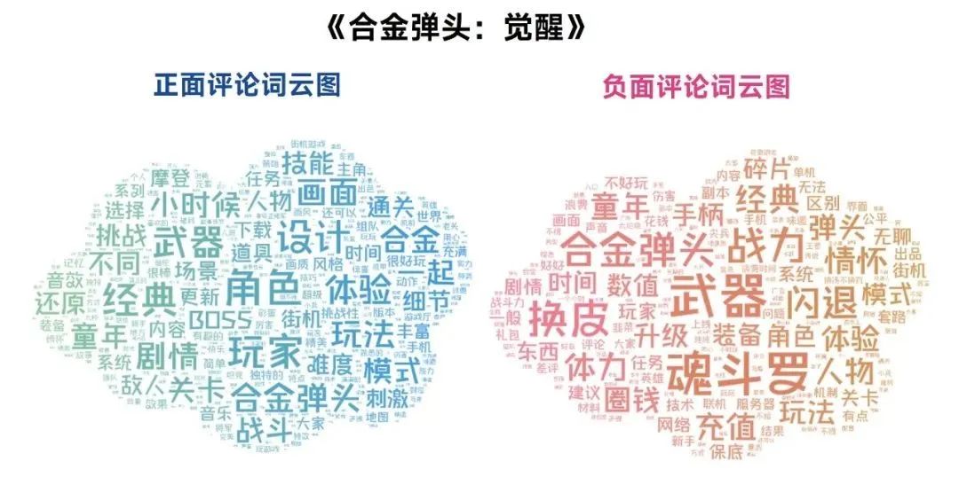 注:正面评论为用户评分4~5的评论,负面评论为用户评分1~3的评论;图中内容为单词筛选后呈现结果。数据来源:伽马数据(CNG)