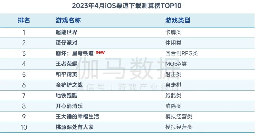 iOS渠道下载测算榜TOP10:卡牌类产品登顶,1款新游入榜