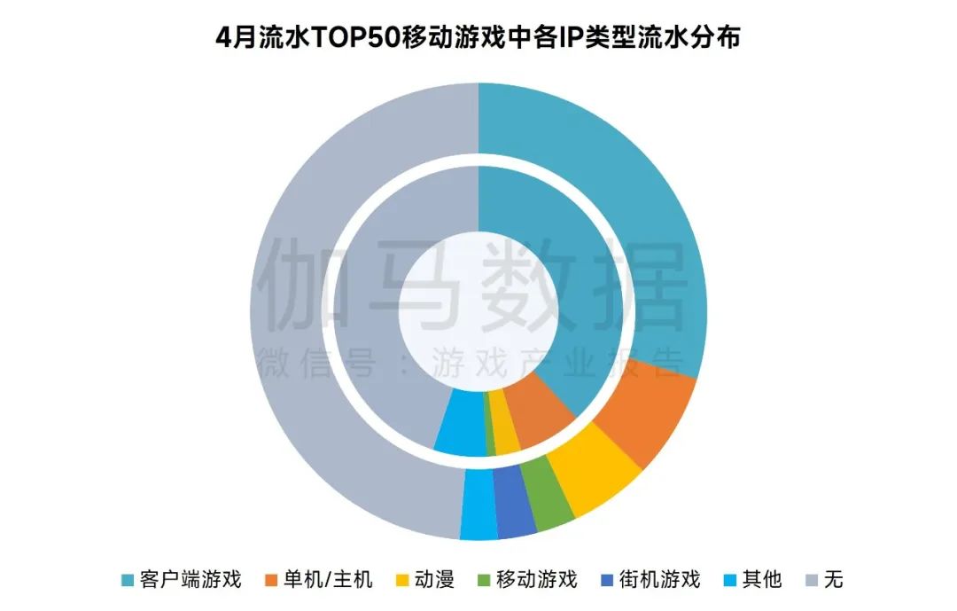 流水TOP50游戏IP分布:客户端游戏IP改编产品流水份额减少,新增街机游戏IP改编产品