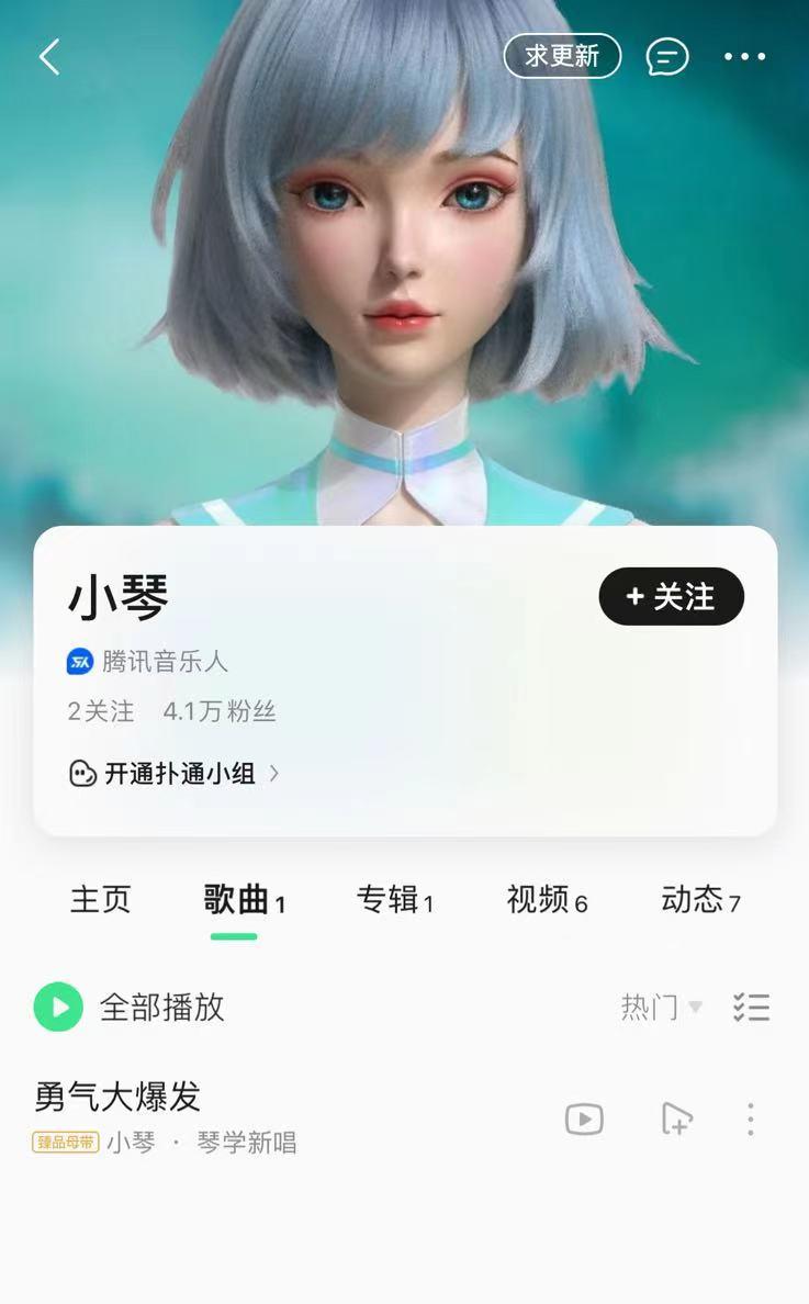 腾讯音乐首位AI音乐人小琴 图片来源:音乐平台截图