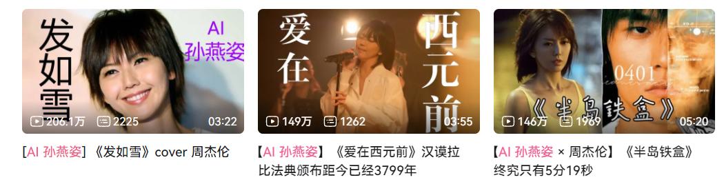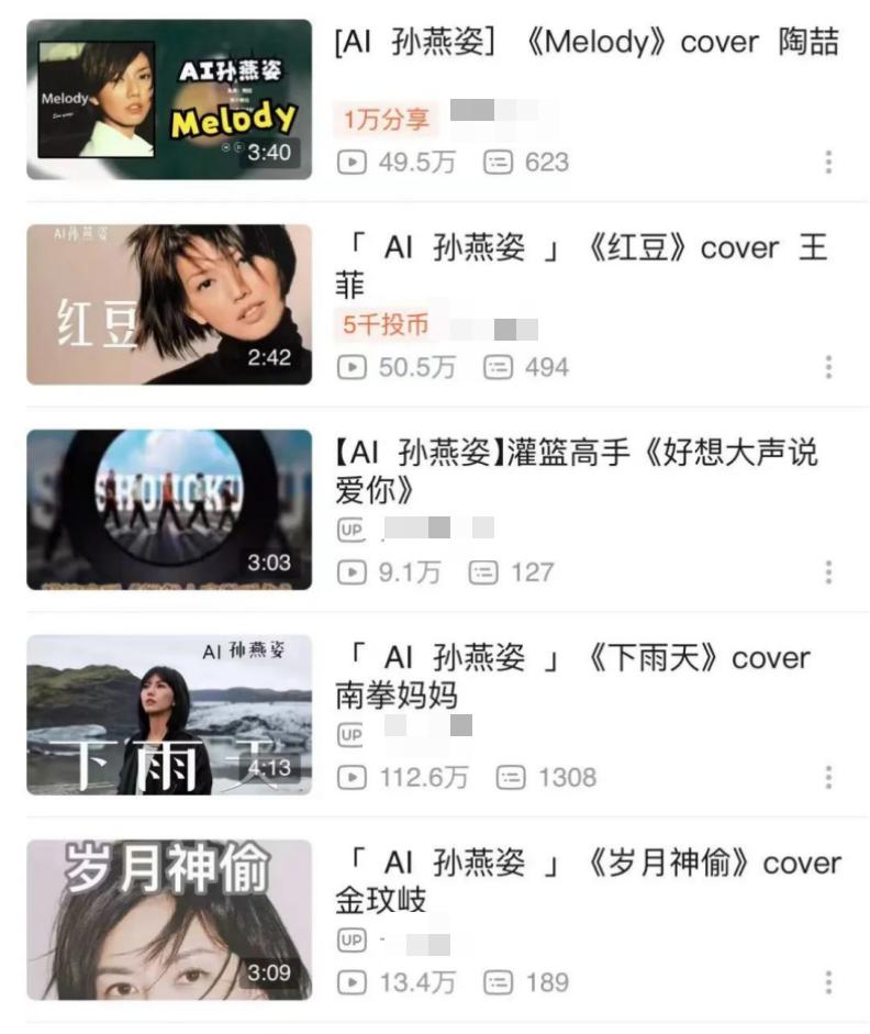 打开各个社交平台,搜索“AI孙燕姿”,五花八门的相关视频让人眼花缭乱。有播放量超百万的AI孙燕姿翻唱的《发如雪》《爱在西元前》,也有AI孙燕姿的制作教程视频,还有在AI孙燕姿火爆后被“创作”的其他AI歌手。