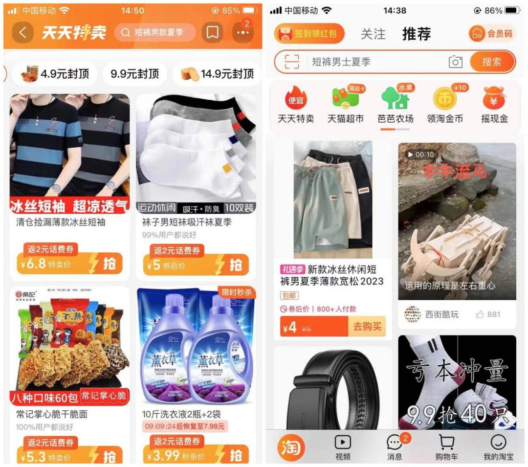 对标京东,淘宝先后上线“天天特卖”“全网比价”功能。以天天特卖中的源头低价,买贵必赔专区为例,在该专区内,更是有着不少4.9元、9.9元、14.9元封顶的产品。改版后的淘宝首页位置,也是被大量的低价商品所占据。
